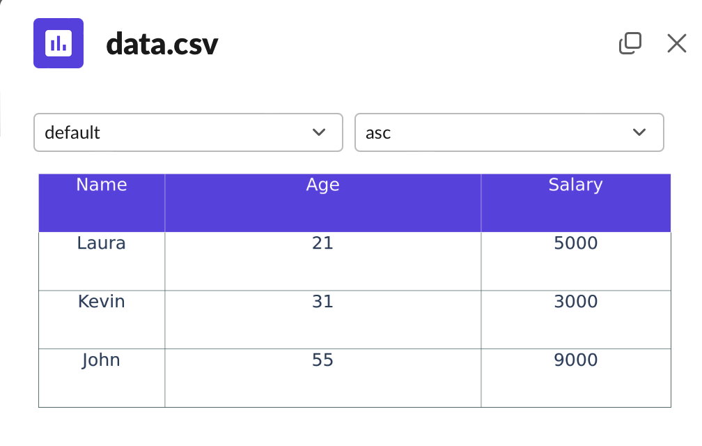 - Once the rendering process is complete, you will be able to click the "view table" option below the preview. This will open a new popup window where you can interact with the table.